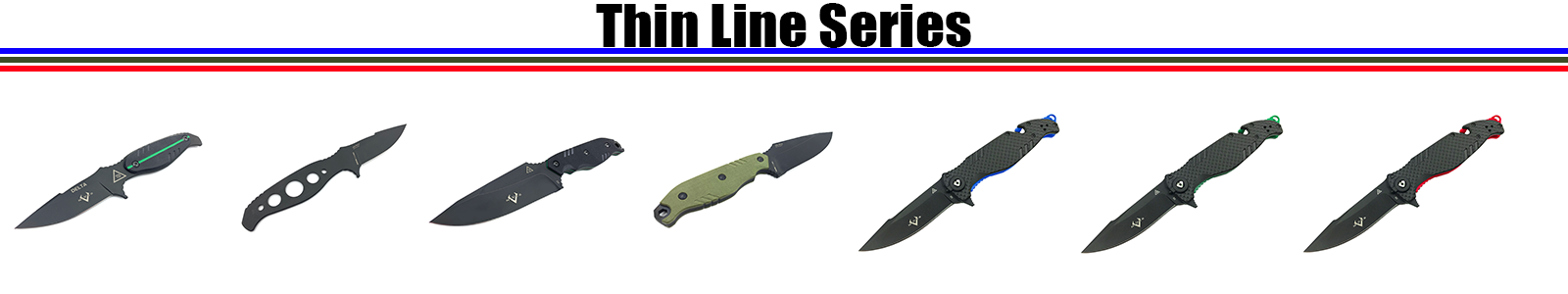 The Thin Lines Series is a collection of folding knives and fixed blade knives designed by Lt. John Nores. These tough, rugged knives are designed to handle many different environments, gloved hands, emergency situations (folders only), and everyday carry use. Show your support for military, first responders and police forces with the different colors available.