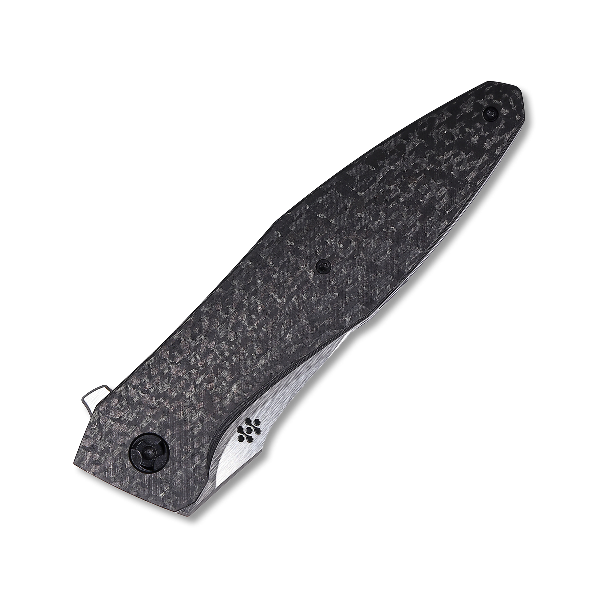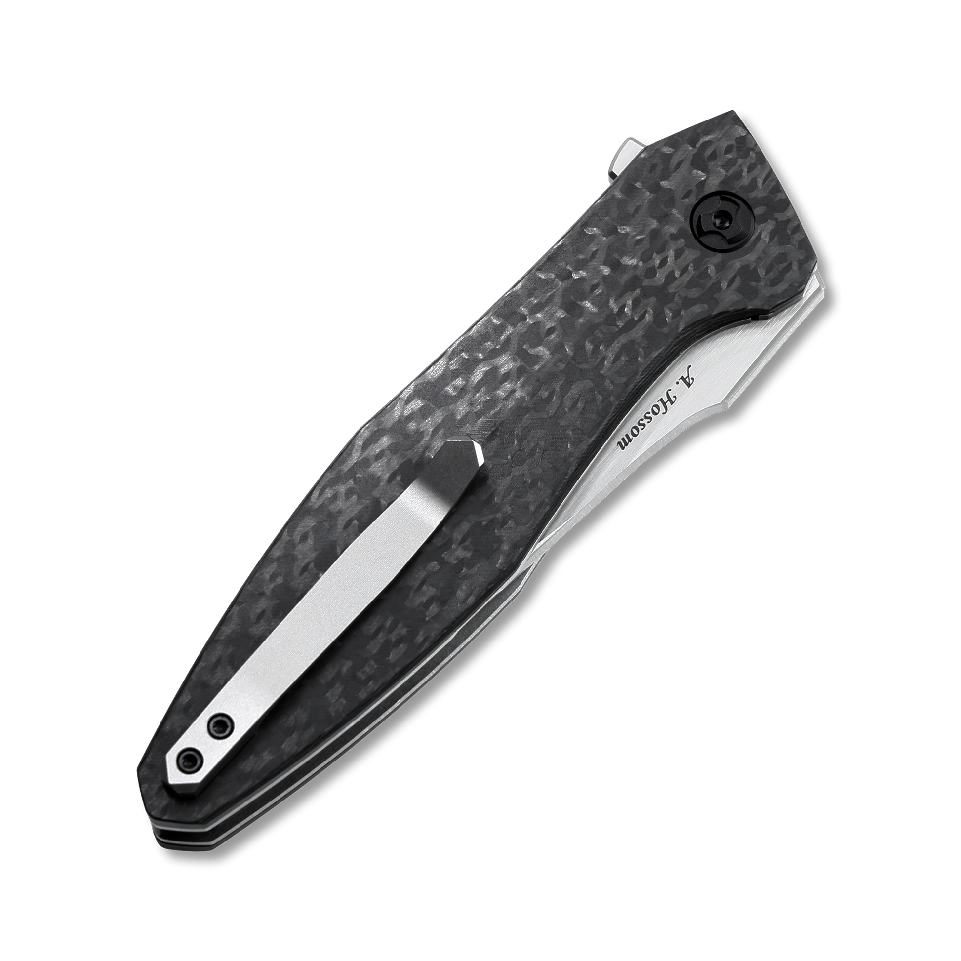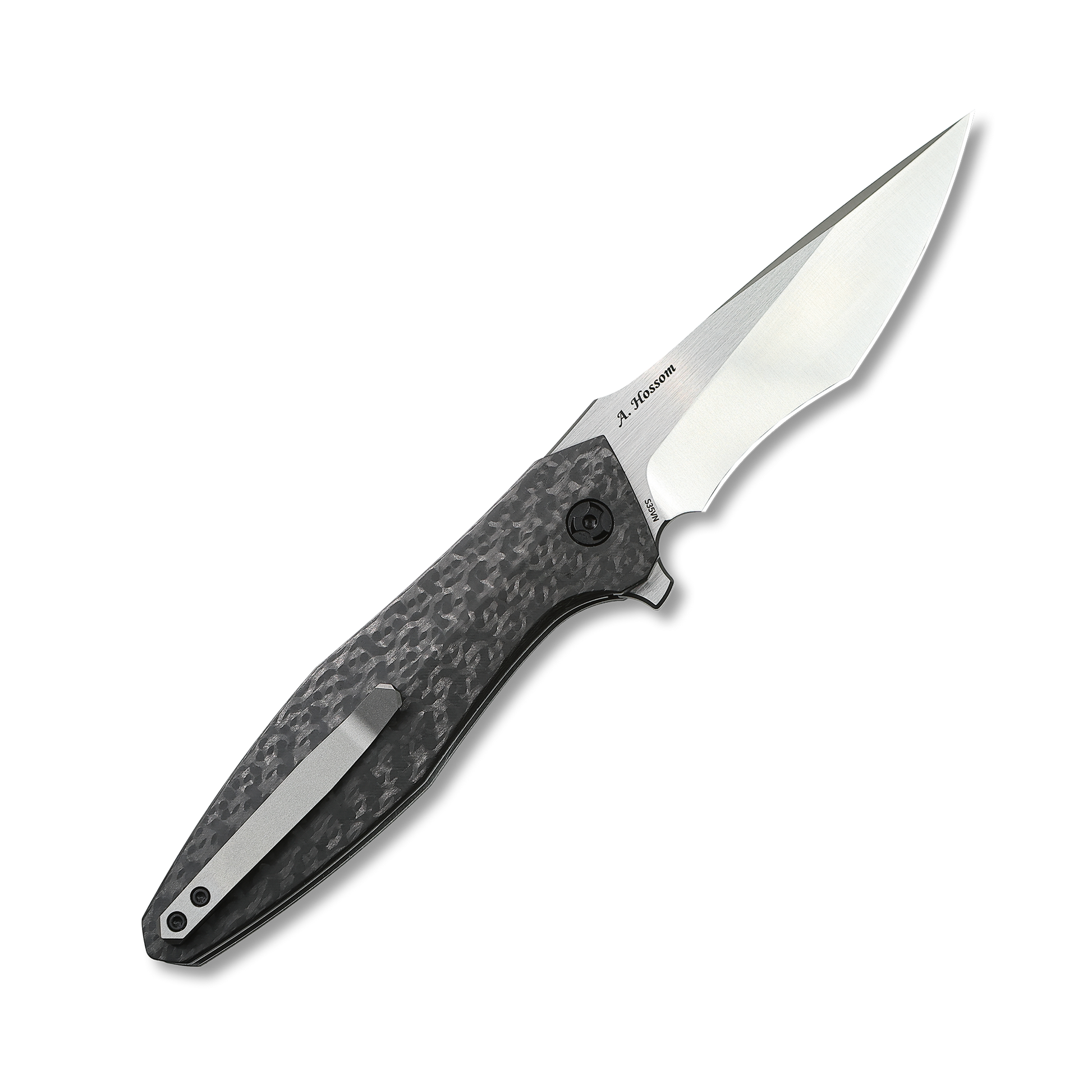 Primo, the design by Alex Hossom that won the 2025 Blade Show Tactical Knife of the year! This flipper folding knife has a S35VN Recurve Drop Point blade with a Carbon Fiber handle. The blade has a length of 3.35" with a thickness of .15" and a liner lock. The overall length is 7.87" when open and 4.52" when closed with a weight of 3.7 oz.